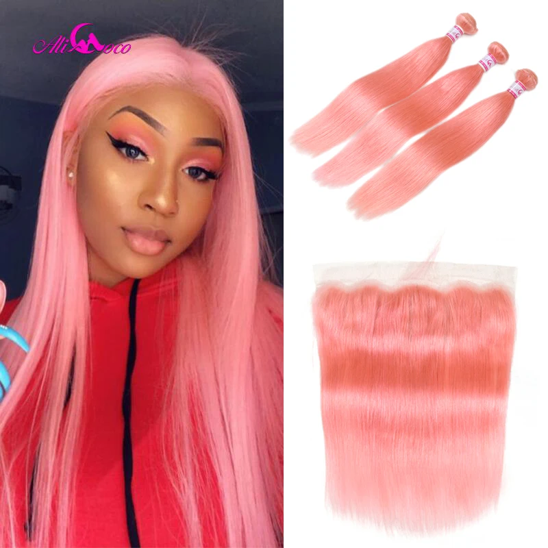 Ali Coco 26 28 30 Inch Pink Brazilian Hair Weave 3 Bundles With Frontal Straight Hair Bundles With Frontal Remy Hair Extensions Hair Bundles With Closures Aliexpress
